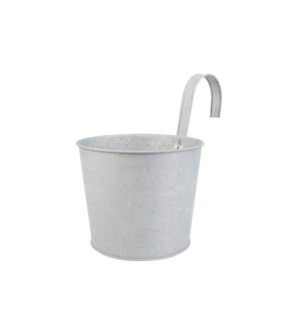 Cache pot en zinc idéal pour exposer ses fleurs sur la rambarde de son balcon. Dimensions : 24,5 x 16 x 25,2 cm (y compris accroche).