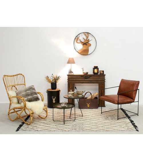 Illuminez et créez une ambiance chaleureuse et tamisée pour vos soirées d'été grâce à cette lanterne en métal doré et noire aux motifs cerfs. À la nuit tombée, vous appréciez la lumière tamisée que diffuse cette jolie lanterne.