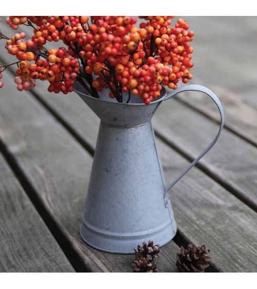 Arrosoir en zinc patiné de 19,3 cm de diamètre à la base - Hauteur 20 cm.  La contenance totale est de 1,11 litres Cet arrosoir remplira joliment sa fonction d'arrosoir mais avec le style champêtre en plus !
