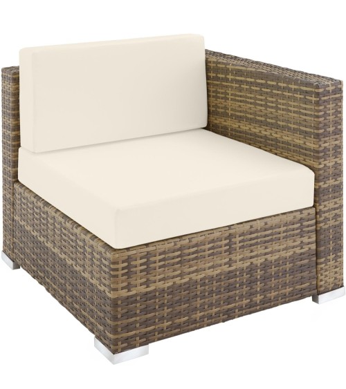 Profitez à fond de l'été à l'extérieur avec notre canapé de jardin PARIS modulable 5 places tectake ! Grand et confortable, il peut être aménagé en différentes configurations : salon de jardin, canapé XXL, double banquette, coin méridienne... à vous de choisir ! Pour encore plus de confort, 2 coussins sont compris dans la livraison. Le canapé est constitué d'une structure en aluminium recouverte de résine tressée. Ce matériau d'aspect similaire au rotin naturel rend l'ensemble à la fois léger, résistant et facile à entretenir. La résine tressée moderne est du plus bel effet aussi bien à l'extérieur sur votre terrasse, qu'à l'intérieur dans un jardin d'hiver, dans une véranda ou même dans votre salon. Contrairement au rotin, la résine tressée ne nécessite que très peu d'entretien : un coup de chiffon humide et le tour est joué ! Les housses des grands coussins sont lavables et peuvent passer à la machine en cas de tâche. Leur surface est par ailleurs imperméabilisée pour ne pas laisser rentrer l'humidité. Nous vous recommandons néanmoins de retirer les coussins lorsqu'il pleut pour une meilleure durée de vie. Poufs : Dimensions avec le coussin (LxPxH) : 75 x 75 x 36,5 cmPoids : environ 4,4 kg Poids maximal supporté : 120 kgFauteuils : Dimensions (LxPxH) : environ 64 x 75 x 60 cm Poids : environ 5,2 kg Poids maximal supporté : 120 kgFauteuil dangle : Dimensions (LxPxH) : environ 75 x 75 x 60 cm Poids : environ 8,1 kgPoids maximal supporté : 120 kgCoussin supplémentaire (vert): environ 42 x 42 x 15 cmTable : Dimensions (LxPxH) : environ 70 x 70 x 26 cm Poids : environ 8 kgPoids maximal supporté : 120 kgMatériaux : Structure : aluminiumRevêtement : résine tresséeCoussins : 100% polyesterLépaisseur de rembourrage des coussins est denviron 10 cm