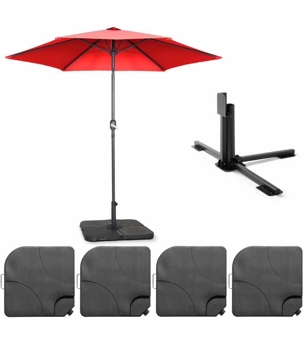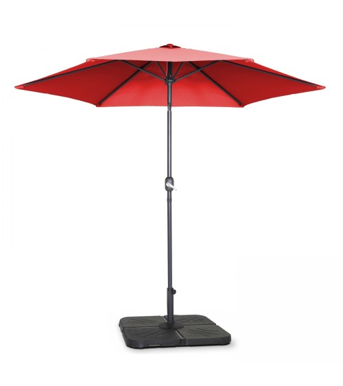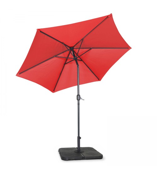 Parasol droit inclinable 3m et 4 dalles à lester remplissables rouge