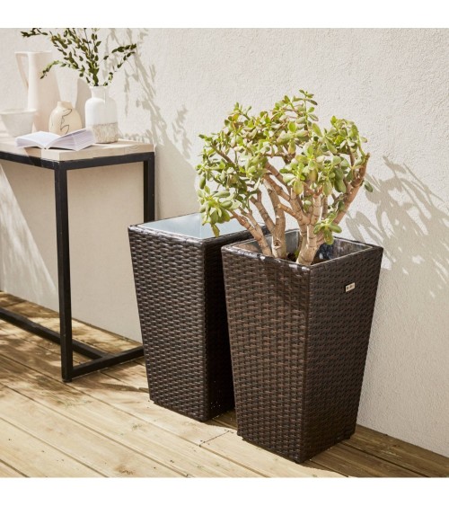 Pots de fleurs de 60 cm en résine tresséeLes + produit Lot de 2 potsStructure en aluminium, léger et robusteGrande hauteur de 60cmCache pot en résine tressée, très tendance !Des pots tendances et indémodables Ces pots de fleurs en résine tressée, sont modernes et mettent en valeur les plantes. Leur côté très chic en fait de vrais éléments de décoration. Ils sont adaptés à un usage en extérieur et en intérieur. Ils sont robustes et indémodables.Des matériaux de qualité pour une durée de vie exceptionnelleLensemble est composé de deux pots de fleurs en aluminium et de deux caches pots de 60 cm en résine tressée. La résine tressée Alices Garden supporte les rayons du soleil et les intempéries. Elle ressemble au rotin naturel mais nen présente pas les inconvénients ! La durée de vie des Prato est exceptionnelle. Et pour vous garantir une résistance maximale, les pots de fleurs sont en aluminium renforcé. Chaque production est vérifiée selon un cahier des charges précis.Attention :Il peut y avoir des différences de teinte selon les références car nos produits ne sont pas tous fabriqués dans la même usine ou colorés dans le même bain.