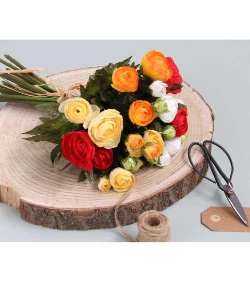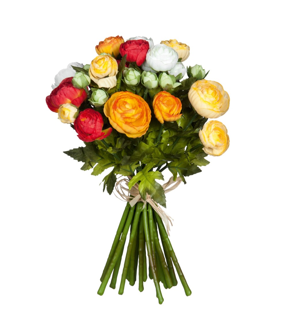 Le rananculus est également appelé renoncule. À l'époque victorienne, si vous donniez un bouquet de renoncules, vous disiez : « Je vous trouve riche en attractions. » Avec le bouquet artificiel de Mica Decorations, cela fonctionne encore de nos jours, ou même mieux. Le bouquet a une bonne finition et des couleurs douces qui ne peuvent être distinguées d'un vrai, mais il présente tous les avantages d'une fleur artificielle : pas d'entretien et fleurit toute l'année. Comme les fleurs sont attachées les unes aux autres, vous pouvez facilement mettre le bouquet dans un joli vase. Ses dimensions sont H35 x Ø26 cm.