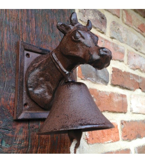 Cette cloche en fonte avec sa tête de vache s'installe très facilement près de votre portail ou de votre porte d'entrée. Sa sonorité agréable et puissante vous avertira dès qu'un de vos invités sonne la cloche ! Cette cloche d'entrée est aussi un très bel objet de décoration près de votre porte d'entrée.