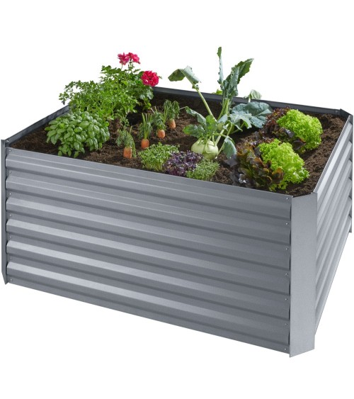 Aménagez un espace spécial pour vos plantes avec le carré potager tectake. Avec les couches appropriées, il devient un excellent producteur d'humus. Grâce à sa hauteur, vous ne jardinez pas dans une position inconfortable. Vos herbes aromatiques et plants sont à l'abri de l'invasion des mauvaises herbes et des animaux. Le revêtement en zinc rend la structure rectangulaire en acier résistante à la rouille et aux autres influences climatiques - vous pouvez donc profiter longtemps de ce potager de tectake, qui est en outre facile à nettoyer. Dimensions (LxlxH) : environ 120 x 90 x 57 cmVolume : environ 600 LPoids : environ 15 kgMatériau : acier galvanisé
