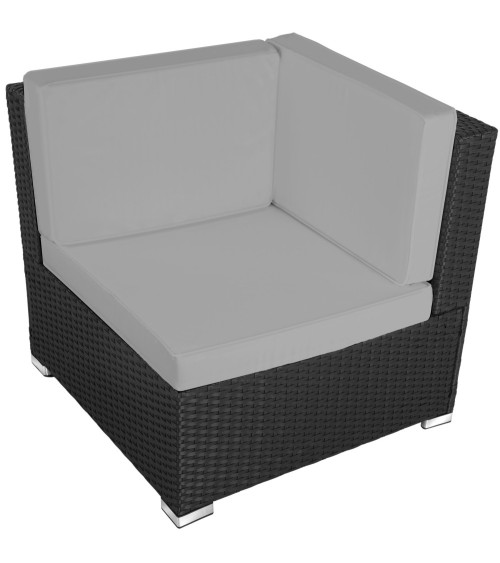 Que diriez-vous de vous détendre sur votre terrasse après une longue journée ? Ce superbe salon de jardin modulable allie luxe et confort ! Son design tendance et élégant s'intègre également parfaitement pour décoration intérieure. Adoptez l'ambiance lounge dans votre salon ! La construction stable avec des vis en acier inoxydable et du Poly rotin résistant aux intempéries est parfaite pour l'extérieur. La résine tressée en dégradé de gris et les housses de coussin amovibles sont parfaitement assorties et sont faciles d'entretien. La table à hauteur d'assise est dotée d'un plateau en verre amovible. Profitez des moments de détente dans ce luxueux salon de jardin. ** Sièges et Tabouret : Dimensions totales du siège (lxPxH) : environ 59,5 cm x 69,5 cm x 68 cm. Dimensions totales du siège d'angle (lxPxH) : environ 69,5 cm x 69,5 cm x 68 cm. Surface d'assise (lxP) : environ 59,5 cm x 59,5 cm. Hauteur dossier : environ 38,5 cm. Hauteur d'assise : environ 29,5 cm. Épaisseur coussins d'assise et de dossier : environ 7 cm. Capacité de charge maximale par siège : 120 kg. Dimensions totales du tabouret (lxPxH) : environ 59,5 x 59,5 x 29 cm. Matériau coussin d'assise : 100 % Polyester. Matériaux : Acier / Polyéthylène. Poids du tabouret : environ 5,9 kg. Poids par siège : environ 7,2 kg. Poids du siège d'angle : environ 10,2 kg. ** Table : Dimensions totales (lxPxH) : environ 59,5 cm x 59,5 cm x 29 cm. Épaisseur plateau en verre : environ 5 mm. Matériaux : Acier / Polyéthylène / Verre. Poids de la table (plateau en verre inclus) : environ 9,3 kg.