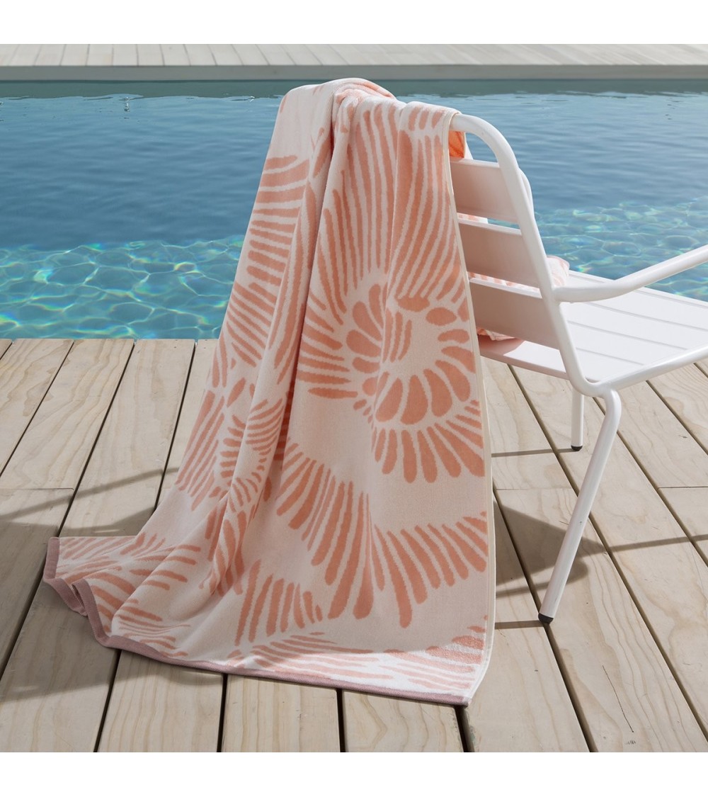 Des fleurs couleur corail se dessinent sur un fond ivoire pour un drap de plage coloré et lumineux ! Ses dimensions de 100x180 cm vous permettront facilement de vous prélasser sur la plage cet été !Ce drap de plage se compose d'une face en velours et d'une face bouclette. Il a été confectionné en éponge 100% coton jacquard 480 gr/m², une matière de qualité supérieure qui vous offre une absorption exceptionnelle et une grande douceur.Conseils d'entretien :Le produit est lavable à 60° et séchable en machine à température modérée - suivez les instructions sur la vignette d'entretien