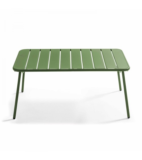Avec son design aéré et robuste, la table basse de jardin Palavas accompagnera idéalement vos moments détente en plein air. Entièrement fabriquée en acier thermolaqué et traitée anti-corrosion, elle offre une solidité et une résistance sans comparaisons. La table basse en acier ne craint ni l'humidité ni les rayons ultraviolets : même utilisée quotidiennement en extérieur, elle ne prendra pas une ride et n'exige pratiquement aucun entretien. Les fentes du plateau permettent d'évacuer naturellement les éventuelles eaux de pluie, et les pieds sont équipés de patins anti-dérapants pour une stabilité irréprochable sur tout type de surface. Caractéristiques de la table basse Palavas : Table basse de jardin Conception 100% acier thermolaqué Traitée anti-rouille à la peinture époxy Évacuation des eaux de pluie Patins anti-dérapants Dimensions de la table basse Palavas :    Longueur : 90 cm    Largeur : 50 cm    Hauteur : 40 cm Colis : Poids de la table : 7 kgAfin de prolonger sa durée de vie, hivernez si possible votre mobilier en acier en intérieur (une cave, un garage, un abri de jardin...). Idéalement dans un endroit sec et ventilé.