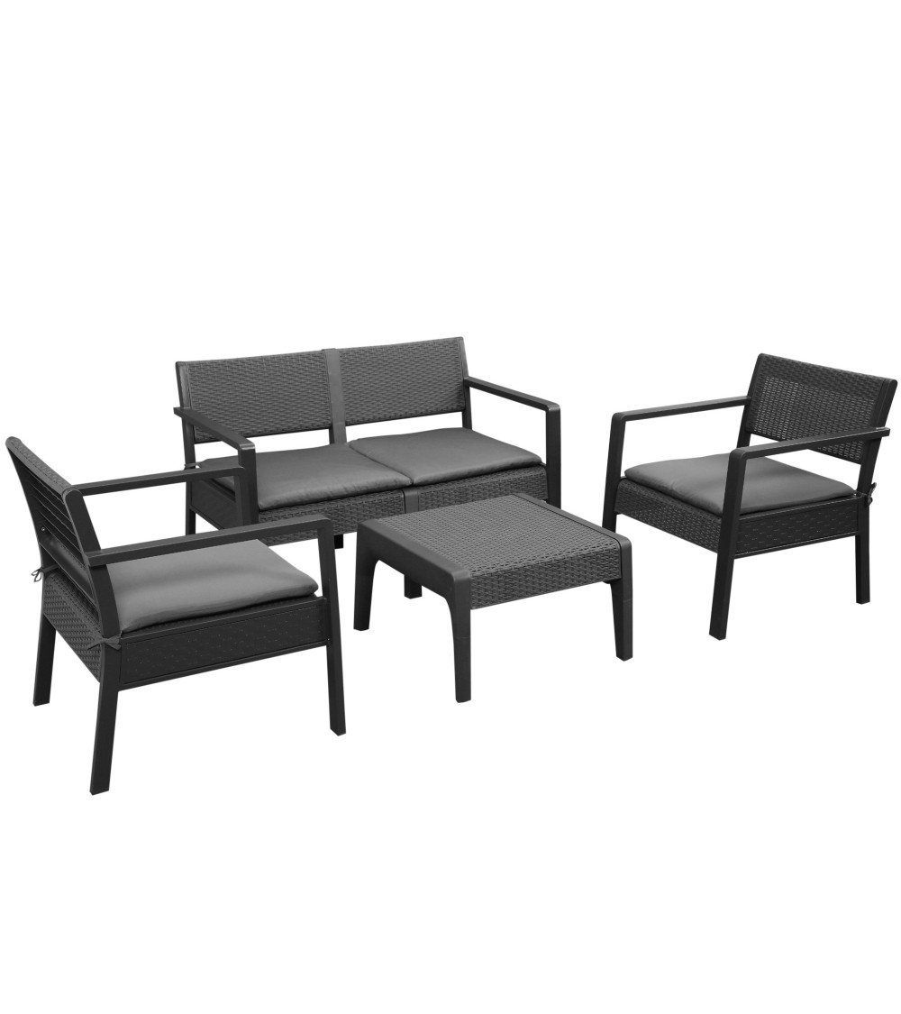 Ensemble salon de jardin 4 places 4 pièces style yachting anthracite