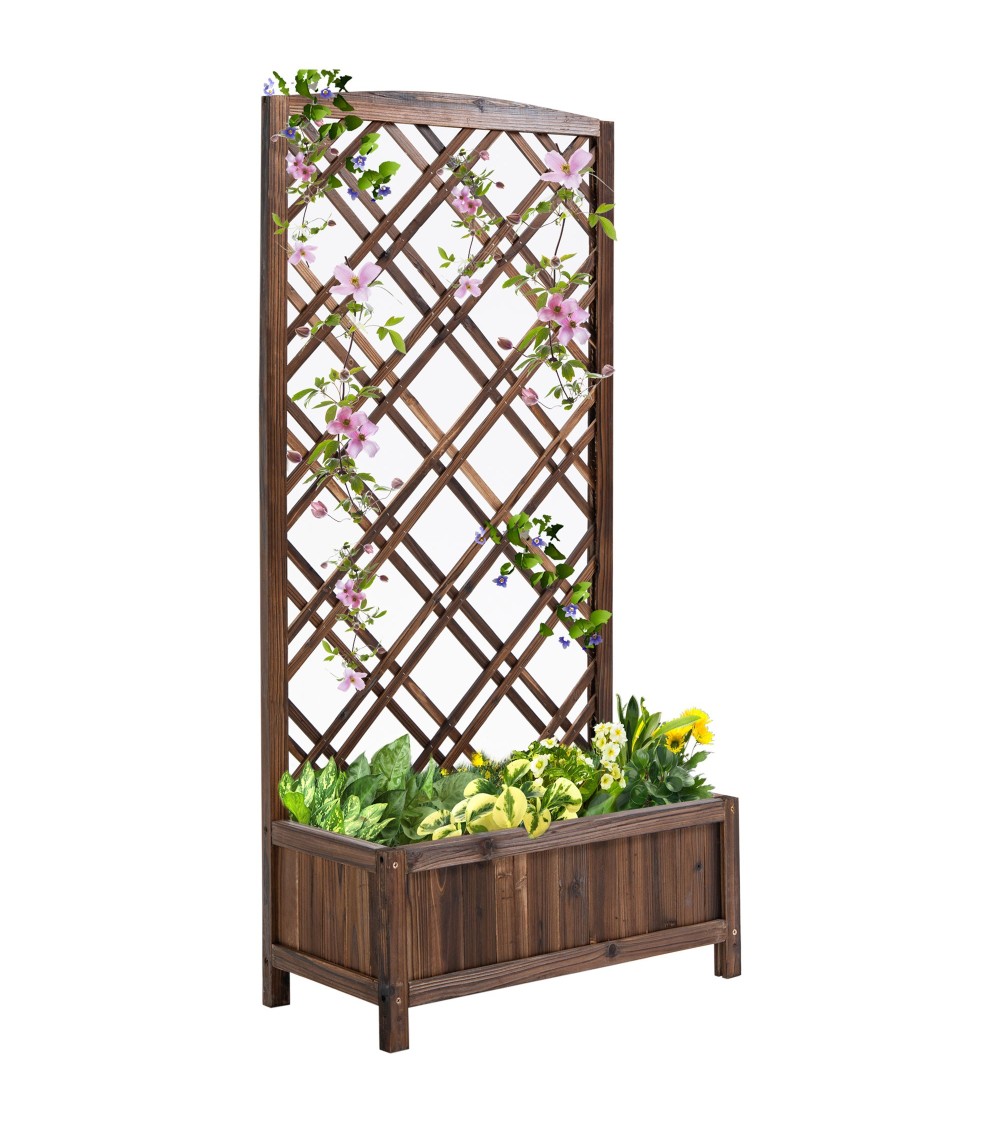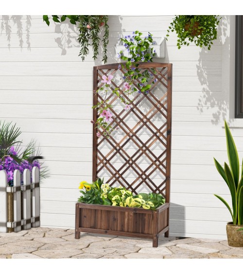 Jardinière avec treillis droit bois sapin traité carbonisation