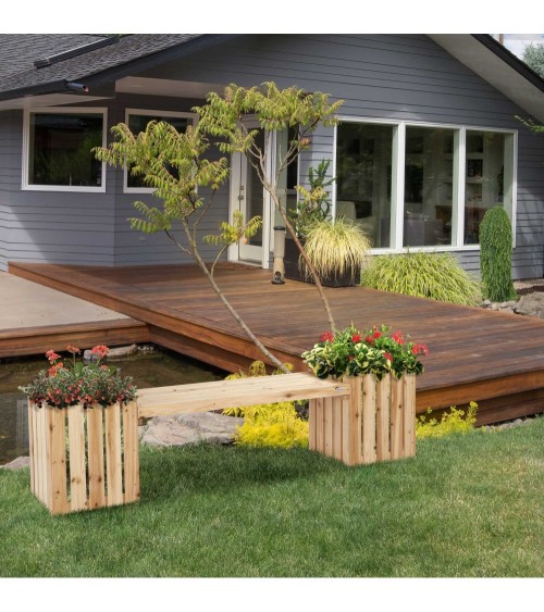 Banc de jardin jardinière double 2 en 1 bois sapin naturel