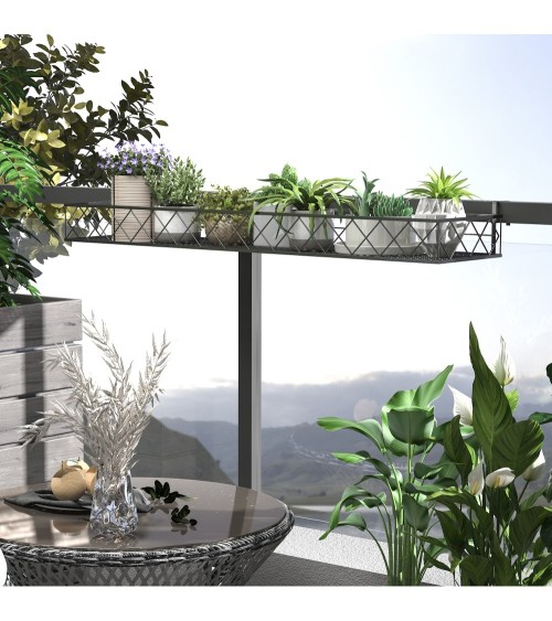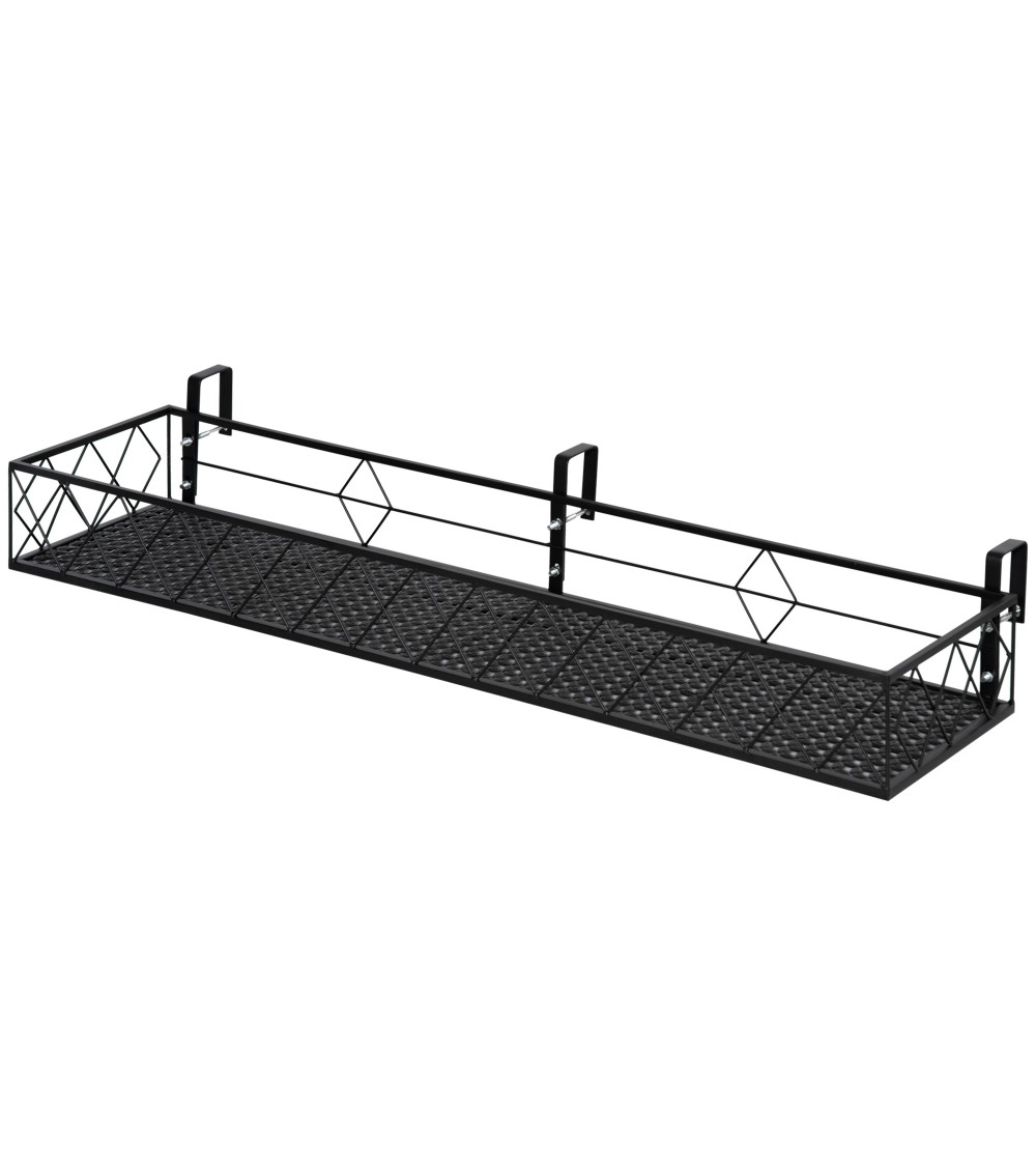 Adoptez la jardinière suspendue en métal noir pour vous créer un joli coin de verdure sur votre balcon. Aux lignes épurées et géométriques, ce support à plantes apportera un style contemporain à votre extérieur. Le support vous permet d'installer la jardinière sur le balcon pour créer un espace jardin, même en cas d'espace restreint.Caractéristiques : - Notre porte-plantes suspendu au style contemporain apportera un vent de modernité à votre extérieur- Idéal pour créer un espace de verdure sans encombrer le sol- Support fabriqué en métal, solide et durable- Les fixations sont réglables, vous pouvez l'accrocher à une balustrade moins de 5,5 cm de largeur- Convient à la plupart des pots de fleurs de balcon- Facile à assembler et à installer- Note : Convient aux balustrades de moins de 5,5 cm de largeurSpécifications : - Couleur : noir- Matériau : métal- Dim. totales : 100L x 31l x 12H cm- Dim. support de fleurs : 100L x 25l x 12Hcm- Dim. intérieures support : 98,5L x 23l x 11H cm- Écartement crochets : 45 cm- Charge max. recommandée : 20 Kg- Livraison effectuée en un colis- Réf. : 845-600V01