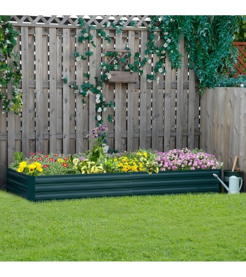 Ce joli carré potager robuste en tôle d'acier ondulée vous permettra de profiter d'un généreux espace de plantation pour vos fleurs, légumes, herbes aromatiques, etc. Grâce à son design rectangulaire et à sa jolie couleur vert foncé, il s'intégrera très facilement dans votre jardin ou plantation.Caractéristiques : - Carré potager rectangulaire avec panneaux en tôle d'acier ondulés idéal pour ajouter une touche d'élégance à votre jardin ou plantation- Idéal pour cultiver les plantes, herbes aromatiques, fleurs, légumes, etc.- Conception, fabrication robuste en tôle d'acier pour une meilleure protection contre la pluie, les rayons UV, le froid, etc.- Conception et fabrication étudiées pour absorber et retenir la chaleur du sol afin d'optimiser le développement des racines de vos végétaux- Convient à une installation en extérieur ou en intérieur type serre, tunnel, etc.- Panneaux modulables (possibilité de grouper plusieurs potagers, de personnaliser sa forme, carré, rectangulaire)- Montage simple et rapide à l'aide du manuel d'assemblage illustré fourniSpécifications : - Couleur : vert foncé- Matériau principal : tôle d'acier- Dim. totales : 241L x 90,5l x 30H cm- Dim. espace plantation : 235,5L x 86,5l x 30H cm- Livraison effectuée en un colis- Réf : 845-518GN