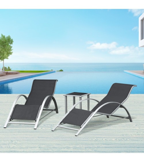 Lot de 2 bains de soleil design contemporain avec table basse gris