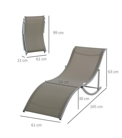 Ce splendide lot de 2 bains de soleil transats design contemporain avec sublimes lignes courbes s'intègrera parfaitement dans votre jardin, sur votre terrasse, ou même au camping ou à la plage. En effet, ce modèle est pliable, compact et d'une grande légèreté (poids net de 4,3 Kg pour chacun). Son design mêlant élégance, sobriété et modernité sera le nouvel atout charme et repos de votre extérieur !Caractéristiques : - Lot de 2 bains de soleil design contemporain avec lignes courbes très élégantes- Transats ergonomiques grand confort afin de s'adapter à tous vos besoins : se prélasser au soleil, faire la sieste, lire un livre, etc.- Transats pliables, compacts, légers (poids net de 4,3 Kg pour chacun) : vous pourrez facilement les déplacer dans votre jardin, les emmener en vacances puis les ranger- Châssis tubulaire robuste en aluminium (charge max. reco. de 120 Kg) : usage pérenne en toute commodité- Revêtement en textilène haute densité 560 g/m² grand confort : matière résistante aux UV, à l'humidité, aux crèmes et huiles solaires, idéale pour un usage en bord de plage ou de piscine- Aucun montage nécessaire, utilisation immédiate possible !Spécifications : - Couleur : gris clair- Matériaux principaux : alu, textilène- Dim. totales : 165L x 61l x 63H cm- Dim. pliées : 99L x 61l cm (épaisseur : 21 cm)- Dim. assise : 54l x 30H cm- Charge max. reco. : 120 Kg- Certifications norme EN581-1-2- Livraison effectuée en un colis- Réf. : 84B-540GY