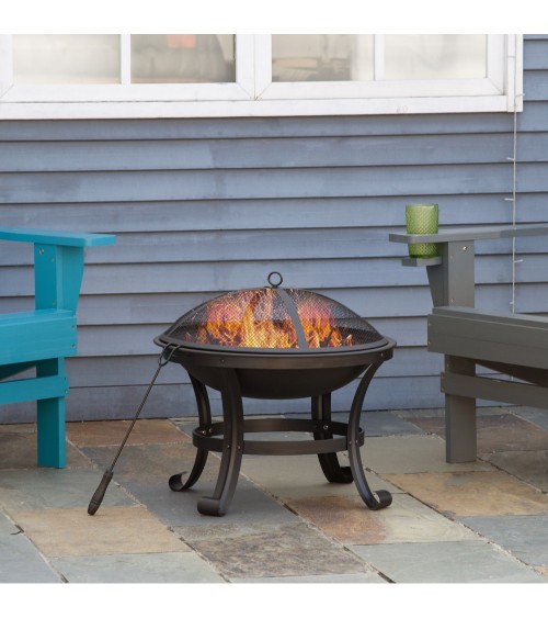 Brasero boule de feu grille charbon couvercle tisonnier acier noir