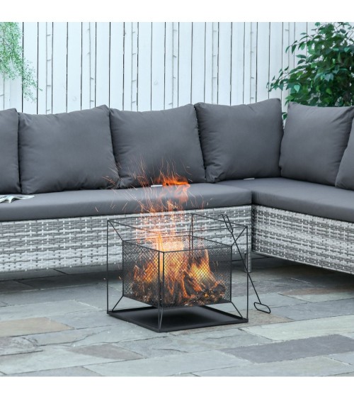 Ce magnifique braséro carré vous permettra de profiter d'une petite braisée lors des fraiches nuits du printemps, de l'été ou de l'automne ! Équipé d'un tisonnier, vous pourrez en profiter en toute sécurité et praticité. Son design minimaliste et graphique fera sensation dans votre extérieur.Caractéristiques : - Brasero idéal pour créer une ambiance chaleureuse et conviviale lors des nuits fraiches du printemps, de l'été ou de l'automne- Équipé d'un tisonnier, vous déplacerez aisément les bûches en feu pour ajouter du combustible ou attiser le feu- Le support situé sous le panier à feu garantit une sécurité optimale à tout moment et protège aussi la pelouse et les dalles de terrasse des dommages causés par la chaleur- Fabriqué en métal solide et résistant pour une grande longévité- Le revêtement enduit de poudre peut résister à des températures élevées jusqu'à 600°C- Aucun assemblage requis, utilisation immédiate possible !- Recommandations d'usage : destiné uniquement à un usage extérieur hors sol en bois et à l'écart des enfants et animaux- Vivement recommandé de porter un équipement de sécurité adapté (gants, etc...) et d'éteindre le braséro après chaque utilisation- Brûler uniquement bûches de bois et charbon. Il est conseillé d'avoir un extincteur à disposition si besoinSpécifications : - Couleur : noir- Matériau principal : métal- Dim. totales : 45L x 45l x 43H cm- Dim. foyer : 35L x 35l x 25H cm- Longueur du tisonnier : 50 cm- Livraison en un colis- Réf : 842-214