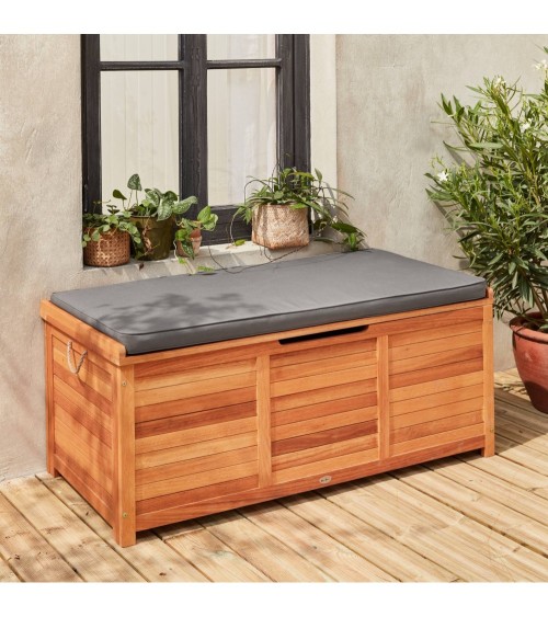 Coffre de jardin en bois avec coussin 125x60cm gris