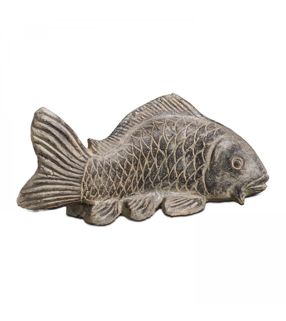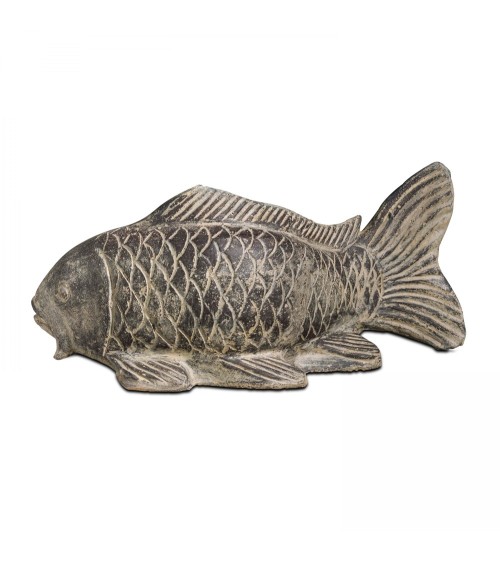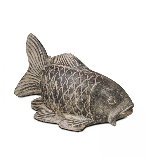 Statue de jardin en forme de carpe, réalisée en pierre naturelle, pour la décoration du jardin ou l'ameublement intérieur. La sculpture reproduit la silhouette élégante de la carpe, symbole de beauté et de virilité dans la société japonaise. Son style asiatique très tendance enrichira la décoration de votre maison et se fond naturellement parmi les plantes du jardin. La statue de jardin est fabriquée en pierre de fonte à partir d'un moulage en creux, puis finie à la main par un sculpteur professionnel. Un traitement patiné lui confère un aspect antique et unique : chaque pièce présente ses propres variations de taille et de tons. La statue de carpe style japonais pèse 23 kg et mesure 55 cm de longueur pour 26 cm de hauteur. La statue de carpe en pierre naturelle est résistante au gel et aux intempéries. Elle peut donc être installée en extérieur sans crainte, été comme hiver : dans le jardin, sur la terrasse, au bord d'un bassin ou d'une piscine.