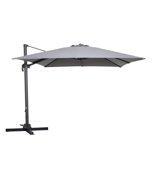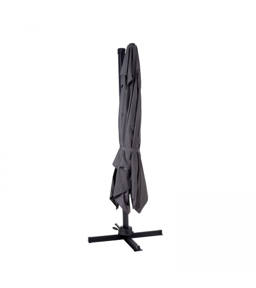 Produit à usages professionnels et particuliers - Parasol déporté carré esthétique 3 x 3 m, et 2 m 50 de hauteur, procure une large surface de 9 m² d'ombrage, idéal pour terrasse et jardin. Ce parasol excentré est très solide grâce à son mât principal de 77 mm x 53 mm de diamètre et son mât déporté 26 mm x 45 mm maintenu par 8 baleines. Ce parasol de jardin et de terrasse est très résistant grâce à sa structure 100 % en aluminium et sa toile 100 % polyester 250 g/m². Cette toile de parasol dispose d'un traitement anti UV, est déperlante et teintée dans la masse pour éviter toute décoloration.Matière : Structure 100% aluminium, finition peinture époxy noireToile 100% polyester 250g/m² avec enduit PVCCroisillon du pied : 100% acierBaleines : 100% aluminiumCaractéristiques : Dimensions tête du parasol 3 x 3 mSurface d'ombrage 9 m²Hauteur 2 m 50Mât principal : section ovale ultra robuste 77 x 53 x ép. 2 mmMât déporté 26 x 45 mm 8 baleines de 17 x 25 mmPoids : 21 kg Plus produit :Mât principal ultra solideS'ouvre et se ferme facilement grâce à une poignée qui glisse le long du mât centralLe montage se fait en quelques minutes.