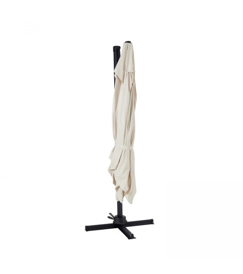 Produit à usages professionnels et particuliers - Parasol déporté carré esthétique 3 x 3 m, et 2 m 50 de hauteur, procure une large surface de 9 m² d'ombrage, idéal pour terrasse et jardin. Ce parasol excentré est très solide grâce à son mât principal de 77 mm x 53 mm de diamètre et son mât déporté 26 mm x 45 mm maintenu par 8 baleines. Ce parasol de jardin et de terrasse est très résistant grâce à sa structure 100 % en aluminium et sa toile 100 % polyester 250 g/m². Cette toile de parasol dispose d'un traitement anti UV, est déperlante et teintée dans la masse pour éviter toute décoloration.Matière : Structure 100% aluminium, finition peinture époxy noireToile 100% polyester 250g/m² avec enduit PVCCroisillon du pied : 100% acierBaleines : 100% aluminiumCaractéristiques : Dimensions tête du parasol 3 x 3 mSurface d'ombrage 9 m²Hauteur 2 m 50Mât principal : section ovale ultra robuste 77 x 53 x ép. 2 mmMât déporté 26 x 45 mm 8 baleines de 17 x 25 mmPoids : 21 kg Plus produit :Mât principal ultra solideS'ouvre et se ferme facilement grâce à une poignée qui glisse le long du mât centralLe montage se fait en quelques minutes.
