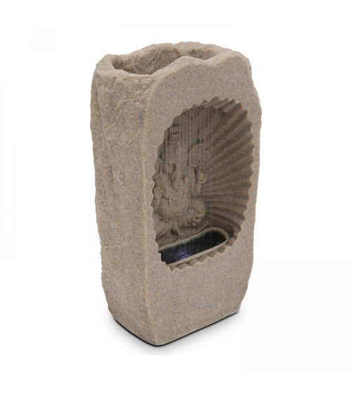 Fontaine de jardin en fiberstone représentant Ganesh dans une alcôve. Ganesh, le dieu à tête d'éléphant et aux quatre bras, est le patron du savoir et des écoles dans la tradition hindouiste. La fontaine Ganesh, avec son style oriental, apporte une touche exotique et spirituelle à votre décoration extérieure. La fontaine de jardin Ganesh est conçue pour durer dans le temps : elle est fabriquée en polyrésine et en fibre de verre, et résiste aux intempéries ainsi qu'aux rayons ultraviolets. La fontaine de jardin peut donc être installée dans le jardin, sur le balcon ou la terrasse en toute saison. Elle est recouverte de projections de poudre de pierre pour un rendu granit naturel. La fontaine Ganesh pour jardin fonctionne en circuit fermé, avec un système de pompe simple à installer. Avec sa LED couleur blanche, la fontaine de jardin imitation granit diffuse une lumière d'ambiance en soirée et sublime votre extérieur. La fontaine de jardin Ganesh mesure 32,5 cm de large, 24 cm de profondeur et 60 cm de hauteur. La notice pour le montage est fournie.