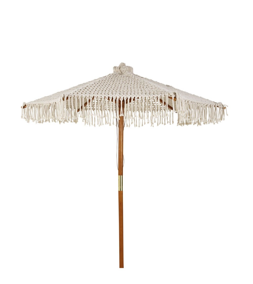 Vous vous êtes récemment découvert une passion insoupçonnée pour le macramé? Vous êtes une personne de goût. Avec son style bohème et artisanal, le parasol en macramé PUEBLA s'accordera parfaitement à vos plantes en suspension. Son tissage écru filtrera la lumière sans assombrir la zone ombragée. Positionnez votre parasol en macramé près d'un fauteuil en rotin pour infuser un charme naturel à votre extérieur.Quand le beau temps sen va, pensez à rentrer votre mobilier à labri dans ses quartiers dhiver afin de le protéger au mieux jusquaux prochains rayons de soleil !