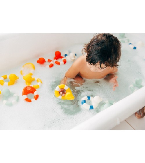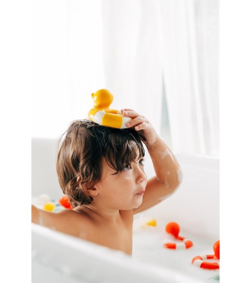 Jouet de bain canard Flo The Floatie Oli&CarolInspiré de la bouée de sauvetage classique, Flo the Floatie est le nouveau petit canard tendance prêt à barboter avec les enfants pendant l'heure du bain !Jouet en caoutchouc 100 pour cent naturel provenant de l'hévéa, l'arbre à caoutchouc. Fabriqué et peint à la main avec des pigments naturels. Chaque pièce étant unique, la forme et la couleur peuvent varier d'un jouet à l'autre. Utilisé comme jouet de dentition, jouet de bain, jouet sensoriel ou objet décoratif ! Doux et souple, facile à saisir et à mâcher. Stimule les sens du bébé et apaise les gencives pendant les poussées dentaires.Totalement hygiénique et antibactérien, sans orifice, pour empêcher la formation de moisissure. Un jouet écologique, sans danger et conforme aux réglementations internationales pour les produits pour enfants. Socialement responsable Oli&Carol apporte son grain de sable en collaborant à divers projets à caractère social.Dimensions10,3 x 7,9 x 6,4 cmComposition / MatièreCaoutchouc 100 pour cent naturelEntretien Nettoyez le jouet avec de l'eau, du savon et un chiffon humide. Ne le stérilisez pas et ne le conservez pas au réfrigérateur. Gardez le jouet dans un endroit sec. Comme tout autre produit naturel, il peut moisir s'il est laissé dans un endroit humide pendant de longues périodes. Il est recommandé de le faire sécher à l'air libre entre deux utilisations. Ne laissez pas le jouet en contact direct avec la lumière du soleil ou toute lumière artificielle pendant de longues périodes, car la couleur peut s'estomper. Nos jouets sont 100 pour cent naturels, donc les petites imperfections ou incohérences sont normales. Les variations de température peuvent affecter la forme et le volume du produit.NormesEN71, ASTM et Reach.Âge conseillé0+AvertissementRetirez l'emballage et toutes les étiquettes avant de donner le jouet à votre enfant.Vérifiez et nettoyez le produit avant utilisation.