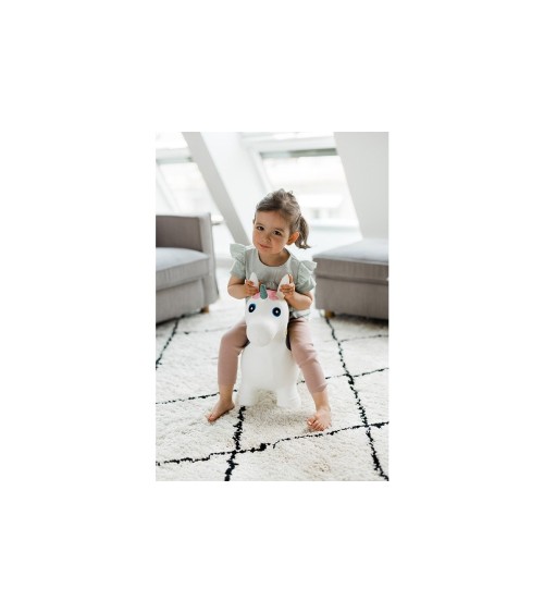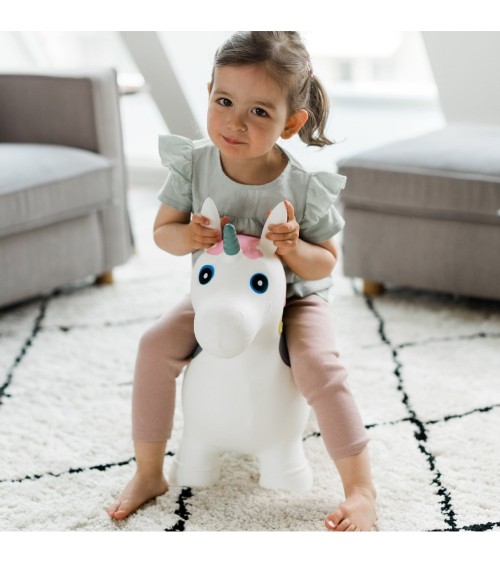 L'animal sauteur de Kindsgut fait briller les yeux des enfants et garantit un plaisir de jeu durable. Cet adorable animal sauteur peut être utilisé aussi bien à l'intérieur qu'à l'extérieur. Mais l'animal sauteur invite également à jouer librement et avec imagination et peut être caressé, nourri ou promené. Un must pour tous les petits fans d'animaux ! L'animal gonflable aux différents designs se gonfle rapidement grâce à la pompe à air fournie et peut être regonflé à volonté si nécessaire. L'animal sauteur est disponible en différents designs discrets et chaque animal mignon convient aussi bien aux filles qu'aux garçons. Chaque animal sauteur aide ton enfant à améliorer ses capacités motrices. Qualité supérieure - l'animal sauteur de qualité supérieure garantit un plaisir de jeu durable . même pour les frères et surs. Respectueux de l'environnement - l'animal sauteur est fabriqué à partir de matériaux respectueux de l'environnement, il ne contient pas de substances nocives et sa finition est adaptée aux enfants. Jouet éducatif - avec le jouet sauteur, ton enfant peut améliorer ses capacités motrices, par exemple l'équilibre et la coordination des yeux, des mains et des pieds. Pour un maintien sûr, l'animal sauteur offre une assise agréable et la possibilité de bien s'accrocher avec les mains. Facile à nettoyer - Le matériau robuste est facile à essuyer avec un chiffon humide ou à nettoyer sous l'eau courante. Polyvalent - il peut être utilisé aussi bien à l'intérieur qu'au jardin et peut supporter jusqu'à 50 kg. Pour tous les goûts - les animaux gonflables Kindsgut existent en cinq variantes au total (chien, cheval, dino, élan et licorne). Le cadeau parfait - un animal sauteur est le cadeau idéal pour le deuxième ou le troisième anniversaire, pour Noël (surtout l'élan) ou pour Pâques. Avec l'amour du détail - l'animal sauteur est joliment emballé et livré dans un carton Kindsgut de haute qualité.