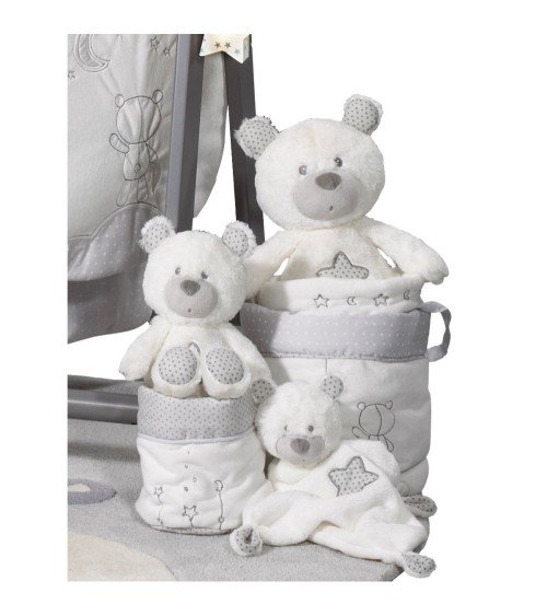 Une famille de doudous déclinés en 2 tailles pour s'adapter à toutes les situations. Le gentil ourson Céleste, vous séduira par sa grande douceur.Détails du produit -Velours 90 pour cent Popeline 10 pour cent .Dimensions- 15 x 31 x 12cmNormes applicables- EN71.1.2.3Conseils d'entretien-Lavage à 30 degrés maximum, programme normal.Ne pas utiliser d'eau de Javel pour traiter cet article.Ne pas sécher au sèche.linge.Ne pas repasser.Ne pas nettoyer à sec.Sauthon, entreprise française spécialiste de la puériculture développe pour vous des chambres de bébé depuis 1948!