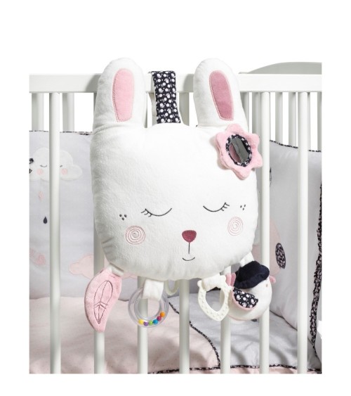 Sauthon a imaginé un nouveau jouet d'activités pour les tout.petits alliant musique et lumière à LED.La lapine charmeuse Miss FLEUR DE LUNE a dans sa tête de nombreuses activités et amusera bébé en voiture ou dans son lit.Détails du produit-80 pour cent velours20 pour cent popelineDimensions- 30x40x8cmNormes et qualité -Norme applicable- EN71.1.2.3Conseils d'entretien -Ne pas laver.Ne pas utiliser d'eau de Javel pour traiter cet article.Ne pas sécher au sèche.linge.Ne pas repasser.Ne pas nettoyer à sec.Sauthon, entreprise française spécialiste de la puériculture développe pour vous des chambres de bébé depuis 1948!