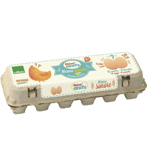 Mém'oeuf , un jeu de mémo sonore original élaboré par la marque Vilac.Exercez vos oreilles et retrouvez les paires d'uf au son identique avec ce jeu de mémo sonore. Ce jeu de mémory se compose d'une boite de 12 ufs en bois. Un jeu éducatif amusant conçu pour stimuler les compétences logiques de l'enfant tout en jouant à partir de 2 ans.Mém'oeuf, un jeu de mémoire de la marque Vilac. Référence 2418.