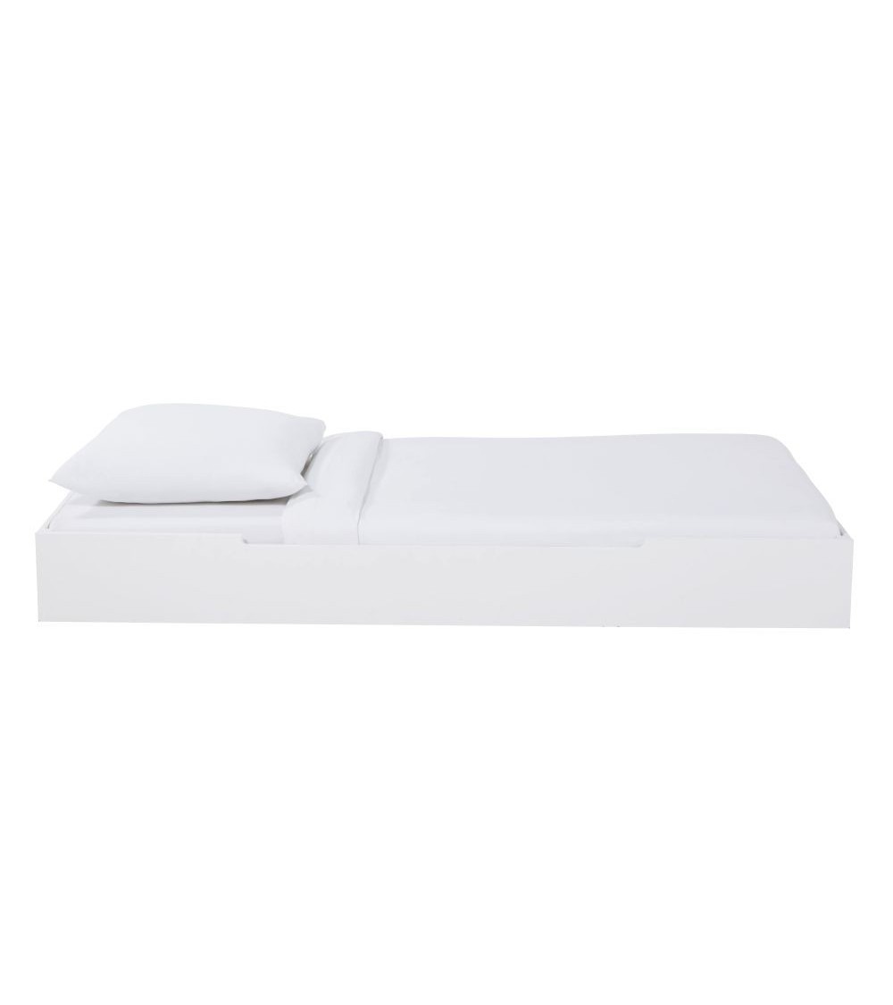 Pratique et futé, le tiroir de lit 90x190 blanc à roulettes GALAXY offrira une capacité de rangement supplémentaire à la chambre de votre enfant. Jouets, livres, jeux de société trouveront place dans ce grand espace. Ainsi, la chambre de votre bout de chou sera parfaitement rangée à la fin de la journée ! Discret avec sa teinte blanche et ses petites roulettes, il se glissera sous le lit superposé de la gamme GALAXY. La bonne idée - ajoutez à ce tiroir de lit un sommier et un matelas aux dimensions adaptées. Comme par magie, il se transformera en un couchage occasionnel pour recevoir les copains.