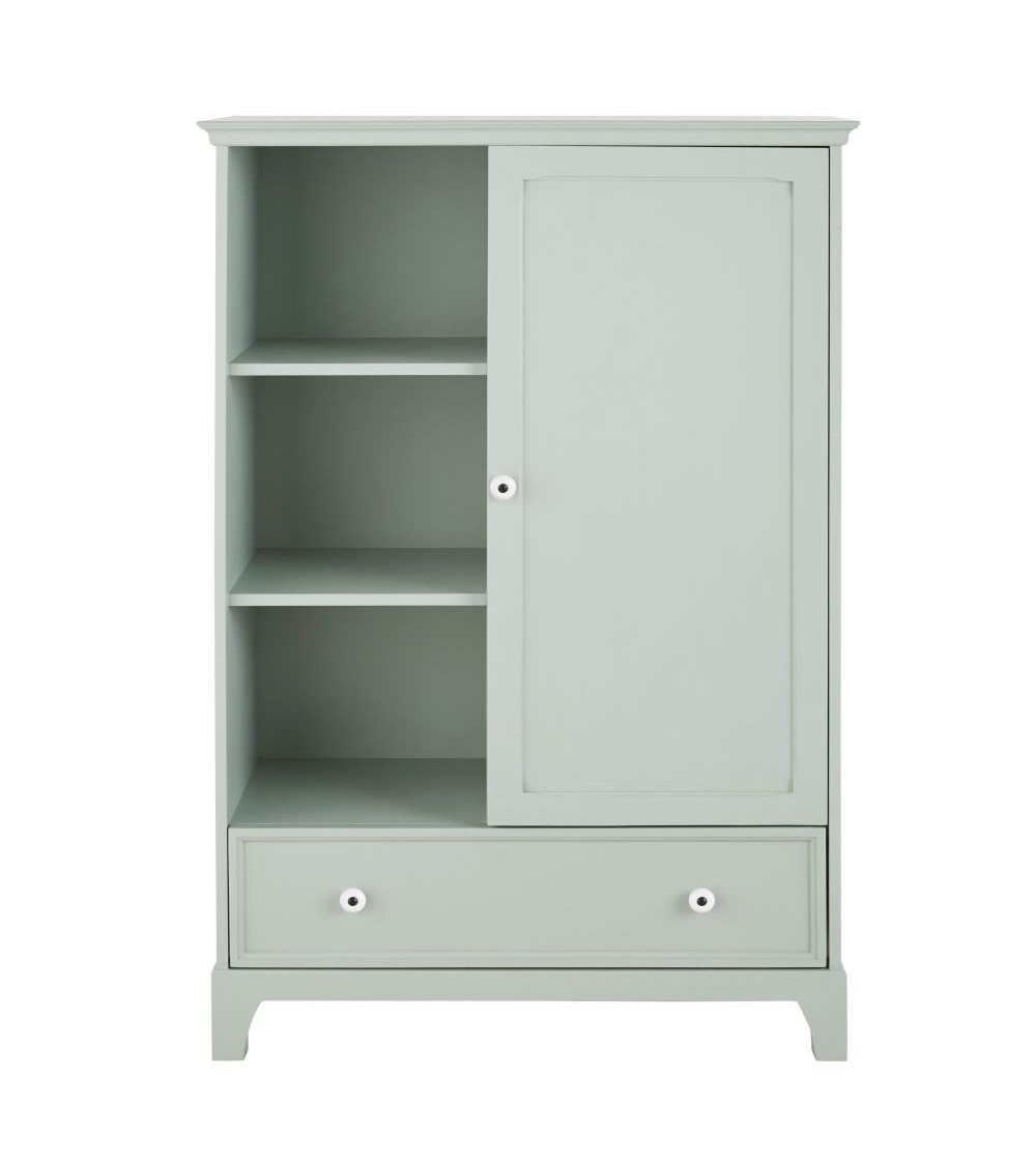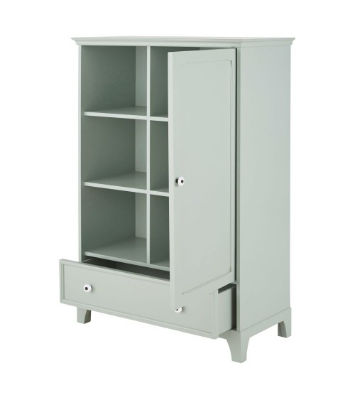 Cabinet de rangement enfant 1 porte 1 tiroir vert de gris
