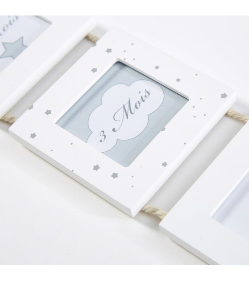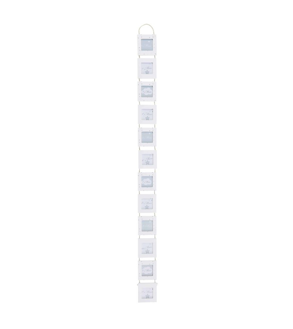 Immortalisez la première année de votre bébé avec le cadre multivues 12 mois 9x136 CELESTE ! Composée de 12 cadres photos carrés, cette jolie déco murale vous permettra de suivre son évolution au fil des mois. Le détail déco : ses encadrements blancs recouverts d'imprimés étoilés qui fondront dans tous les univers enfantins. Notre petit conseil : offrez-le en guise de cadeau de naissance pour faire plaisir aux jeunes parents. Émotion garantie !