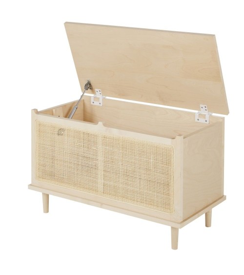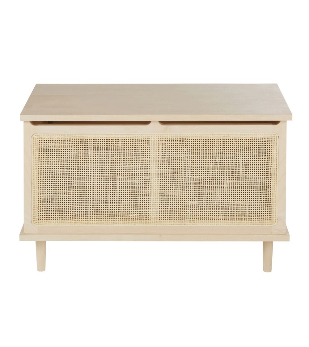 On craque pour ce coffre beige finition cannage en rotin SOLSTICE. C'est le rangement idéal pour les jouets de votre bout de chou ! Ce joli coffre de rangement trouvera sa place aussi bien dans la chambre d'enfant que dans le salon. On aime son design intemporel avec ses finitions, le tout donne une ambiance bohème chic ! Sa couleur claire et naturelle pourra facilement s'accorder avec tous les styles de déco et avec la plupart des couleurs. Vous pouvez ajouter des rideaux blancs et des meubles de couleur claire pour une chambre encore plus lumineuse.