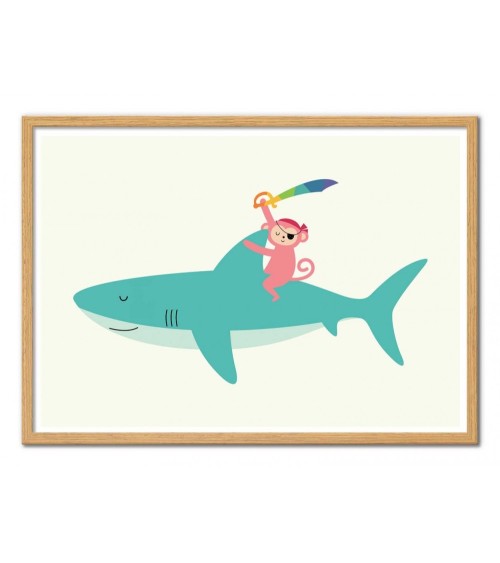 LES AFFICHES : Nos affiches sont imprimées en France, ou Union Européenne.Papier issu de forêts certifiées FSC.Affiche imprimée sur papier couché mat 250g, Haute Définition.Pour les formats d'affiches 30x40 cm : contient des marges blanches de 1,5 cm.Pour les formats d'affiches 50x70 cm : contient des marges blanches de 2 cm.OPTION CADRES : Nos cadres en bois sont fabriqués en France.Comprend une vitre en verre acrylique.Dimensions des cadres en bois 30x40 cm : Epaisseur du cadre : 15 mm, Profondeur du cadre : 20 mmDimensions des cadres en bois 50x70 cm : Epaisseur du cadre : 15 mm. Profondeur du cadre : 20 mm. Si vous cherchez un poster pour enfant au design travaillé et au message chaleureux, les illustrations d'Andy Westface vont faire votre bonheur ! L'artiste aime dessiner les animaux et nous faire ressentir tout l'amour dont ils sont constitués. Sur ce poster nous pouvons voir un singe pirate rose chevauchant un requin blanc tout en brandissant une épée multicolore. Un rodéo comique et si mignon ! Une idée cadeau géniale pour les nouveau nés et bébés !