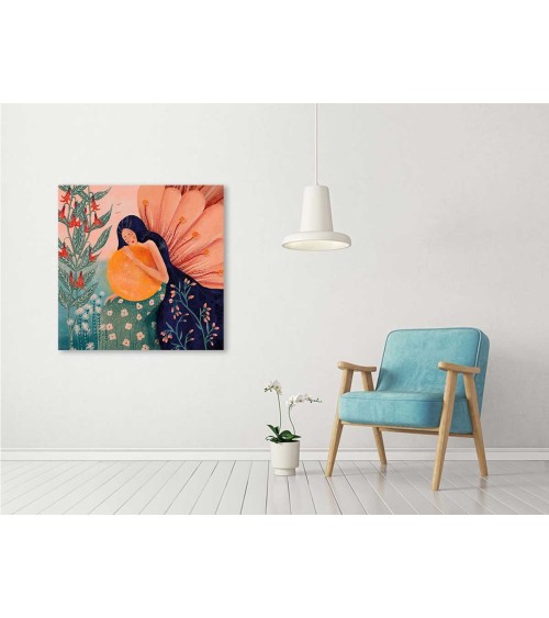 Tableau princesse aux fleurs toile imprimée 100x100cm