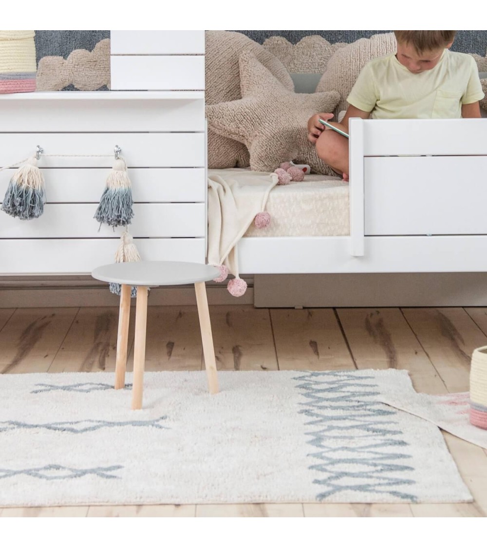 Tapis Atlas Natural Vintage bleu - 170 x 240 cmIdéal pour un salon ou une chambre, ce tapis beige présente 3 petites formes géométriques de couleur grise, ainsi qu'un maillage de chaque côté de la longueur. Ce joli tapis 100% coton est confortable et esthétique.Il crée une ambiance chaleureuse et accueillante tout en conservant son côté chic.Un tapis fait main et soigneusement conçu en coton naturel et teintures non toxiques. Chaque pièce est unique, il peut donc y avoir de petites variations de couleur et de forme. Conforme à toutes les réglementations de qualité et de sécurité pour les enfants (ISO 9001, ISO 14001, ISO 18001 et AITEX), il est conçu à base de fibres 100% naturelles. Le plus de ce tapis : il est lavable en machine ! Ce tapis est dessiné en Espagne et fabriqué à la main en Inde. Livrable sous 1 ou 2 semaines. Dimensions du tapis : 170 x 240 cm