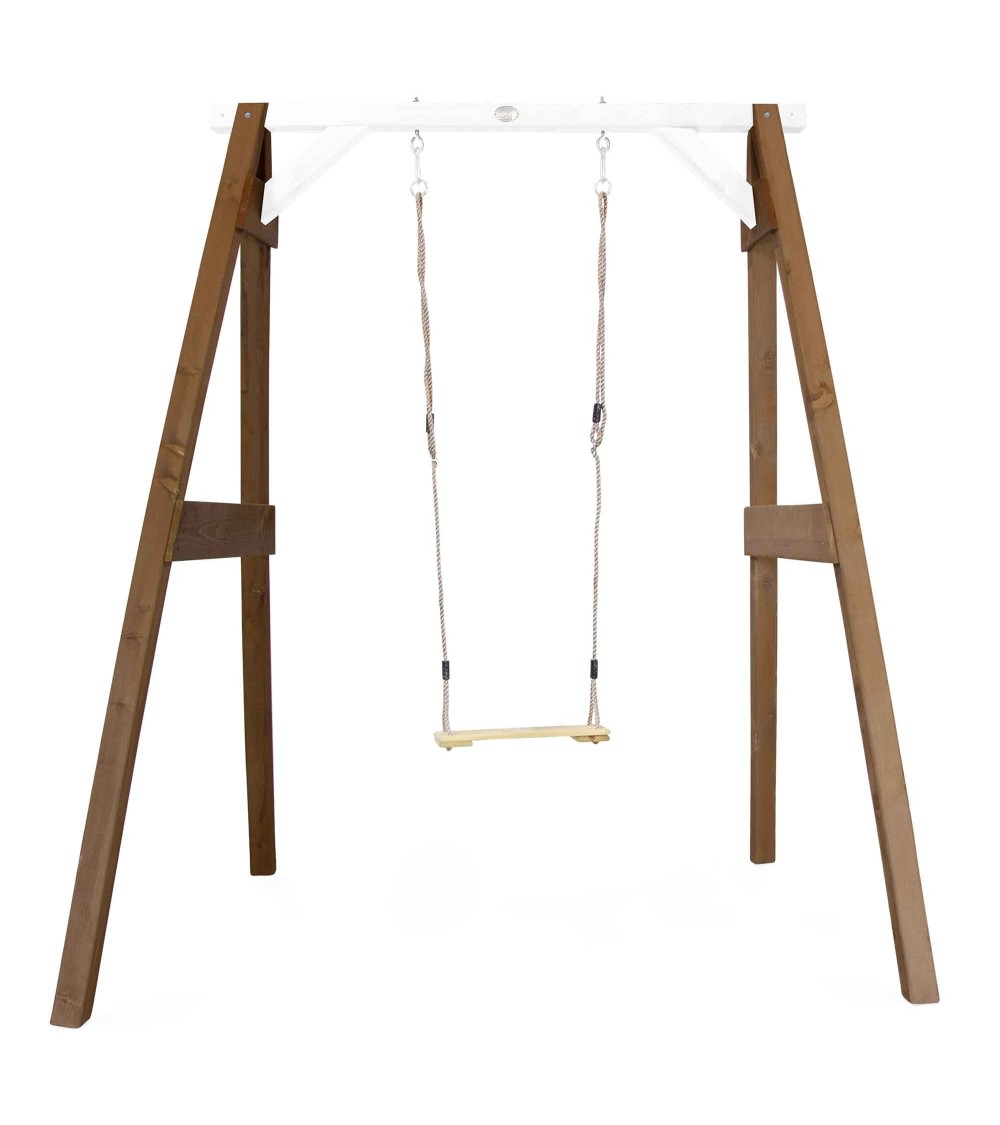 Ce portique 1 balançoire d'AXI est fabriqué en bois de Hemlock. Ce bois ne se fendille pas et est naturellement résistant aux intempéries comme la pluie et donc à la pourriture du bois. Il n'est pas traité chimiquement et il est garanti 10 ans. Il est également traité avec une teinture à base d'eau, sans produits chimiques. Vous n'avez pas à traiter la balançoire avant de l'utiliser. Ce bois est 100% FSC : il provient également de forêts gérées de manière durable et constitue donc un choix écologique. Ce portique AXI est entièrement en bois et comporte des entretoises pour une stabilité accrue. Inclut : Un siège de balançoire en bois réglable en hauteur. 4 ancrages au sol pour plus de stabilité et de sécurité. Dimensions (L xlxh): 160 x 181 x 207 cm Poids maximum: 150 kg. Cadre composé de poutres de 7 cm d'épaisseur Assemblage facile Convient aux enfants de 3 ans et plus. Garantie de 10 ans