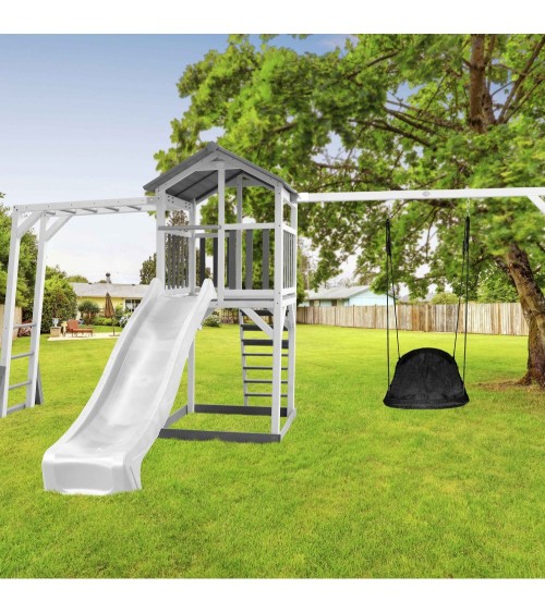 Aire de jeux échelle de singe 1 balançoire nid ovale toboggan blanc