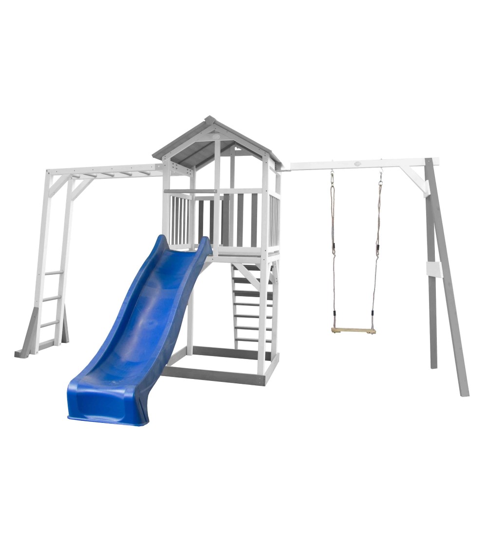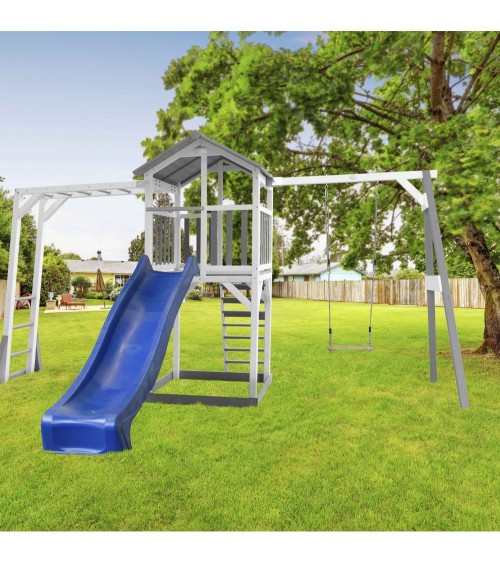 Aire de jeux avec échelle de singe 1 balançoire et toboggan bleu