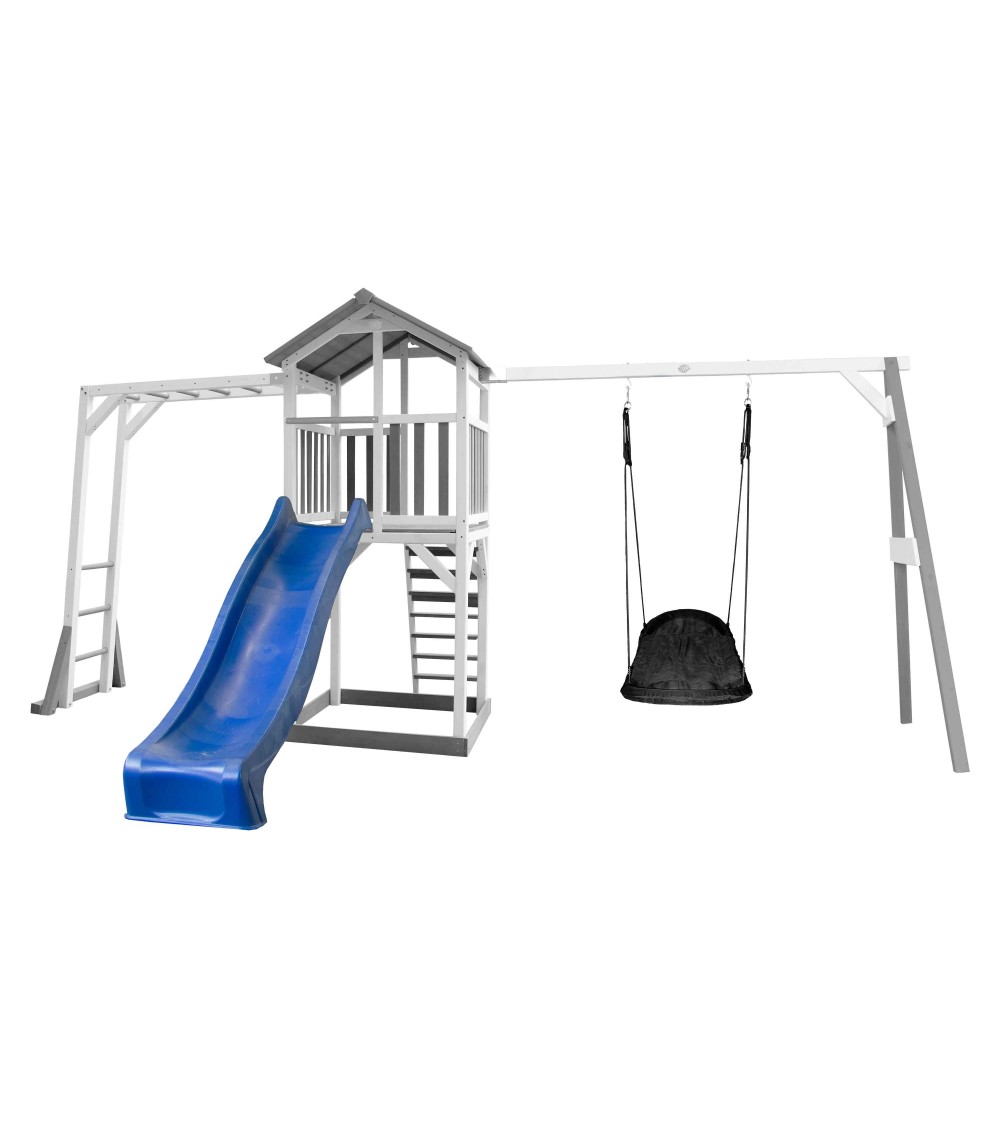 Aire de jeux échelle de singe 1 balançoire nid ovale toboggan bleu