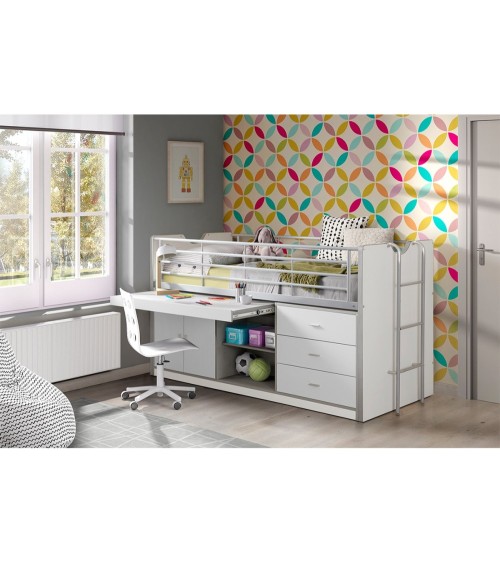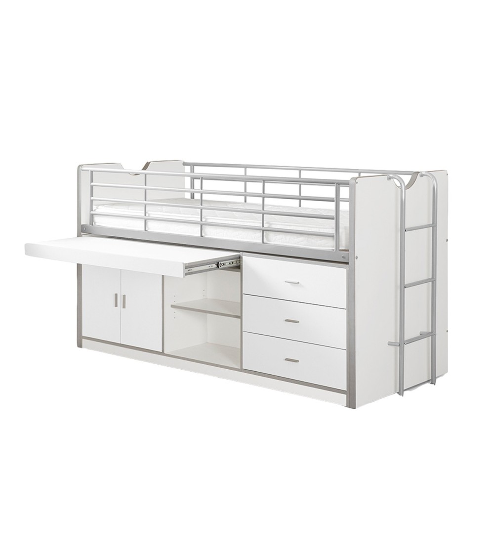 Le lit combiné 95 90x200 est signé par la marque Vipack exclusivement pour la gamme Bonny et s'adaptera à toutes les chambres de votre enfant.Caractéristiques produitMarque : VipackGamme : BonnyMatériaux : Panneaux de particules et MétalCouleur : BlancProduit : Lit combiné 90x200À partir de 6 ansArmoire 2 portesBureau coulissant2 compartiments3 tiroirsPoids : 131 kgDimensions : 207 x 96 x 116 cmDimensions couchage : 90x200 cmGarantie : 24 moisMatelas vendu séparément