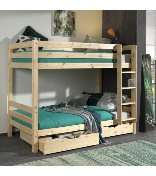 Lit superposé 90x200 hauteur 160 cm sommier inclus naturel