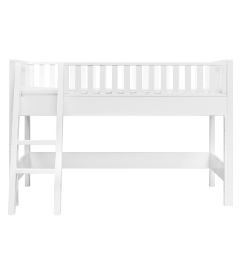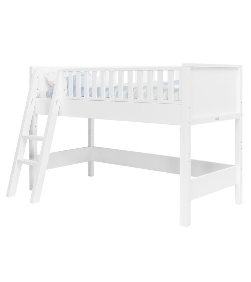 Lit mezzanine mi-hauteur 90x200 échelle inclinée blanc