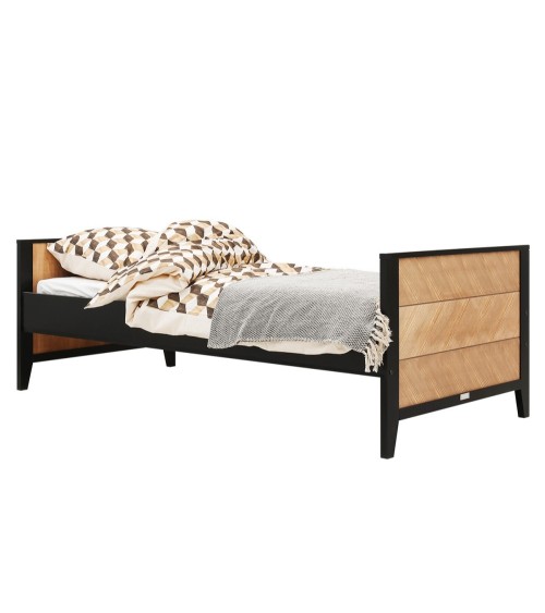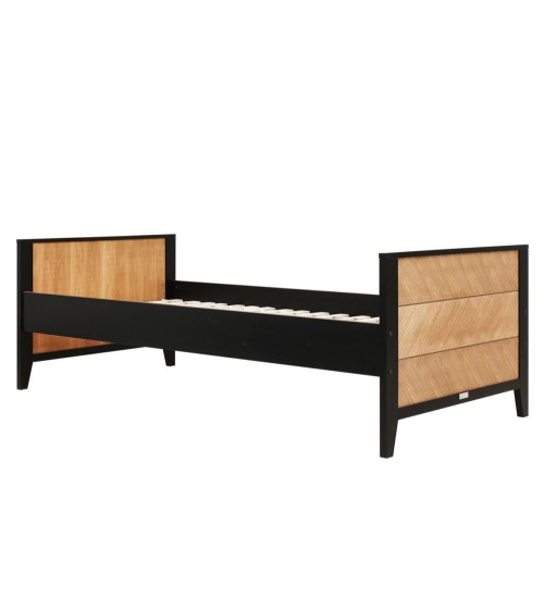 Le lit junior 90x200 Bopita Job est une solution parfaite pour offrir à votre enfant d'avantage de confort qu'avec son lit évolutif. Idéal pour la chambre d'une fille comme pour celle d'un garçon, il est conçu pour durer dans le temps.Caractéristiques produitMarque : BopitaBois de pinMeuble de couleur noir et bois naturelLit conforme aux normes européennes de sécuritéPoids net lit enfant : 41 kgLit enfant Bopita: 206 x 98 x 69 cmLit livré sans matelas, avec sommier à monter, avec notice incluse.Produit Bopita garanti 60 Mois.Matelas vendu séparément