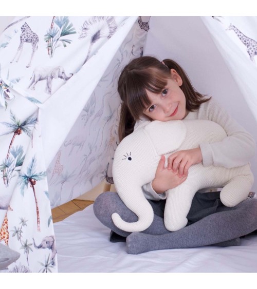 Taille : TU. Jouet enfant en 100% coton, voici un gentil éléphant en peluche, qui adore les câlins. Cet éléphant en maille tricoté en couleur écru deviendra rapidement le doudou préféré. Taille XL: 44 cm Certifiée Oeko-Tex.
