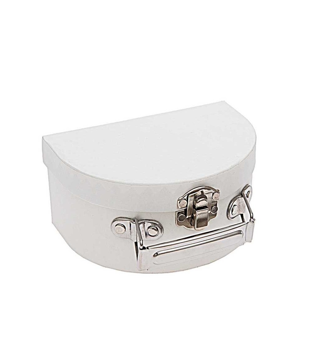 Petite valise en carton semi-circulaire blanche à décorer 12x9x6cm
