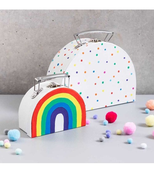 Valise en carton blanche, semi-circulaire, à customiser de la marque Rico Design. Elle pourra contenir aussi bien des souvenirs que les goûters des plus petits. Cette petite mallette est idéale pour une activité manuelle. Vous pourrez décorer votre valisette comme vous le souhaitez avec des marqueurs, des feutres, du ruban, des stickers. Amusez-vous à écrire des messages. L'idée Youdoit : soyez tendance et adoptez un thème floral avec des tampons fleurs, ou peignez vos propres motifs avec de la peinture et des pinceaux. Découvrez aussi cette même valise en version plus petite ou en carton brut. Cette valisette en carton blanche mesure : 12 x 9 x 6 cm.